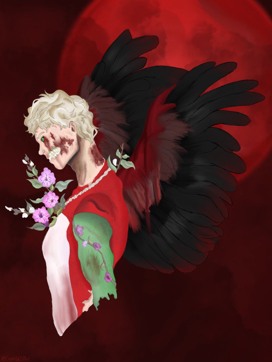 // blood , disturbing imagery (?) Drawing @Ranboosaysstuff every day until he follows me back Day 17: The painting is alive. #artistsontwitter #Ranboo #ranboofanart