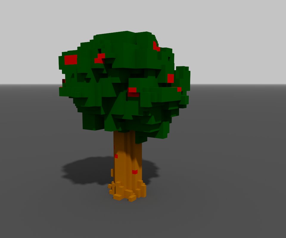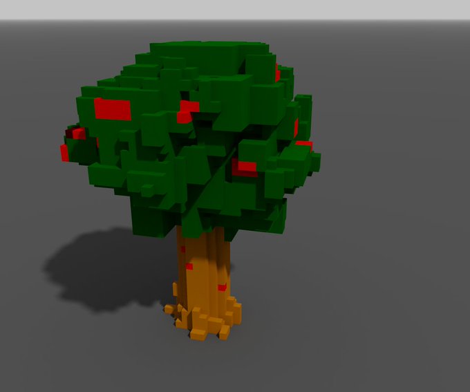 本日、ボクセル職人としての第一歩を踏み出しました。処女作は「木」です。magicavoxelというツールを使いおよそ2時間。今月中に2体のアバターを作ることを目標にコツコツやっていきたいと思います。 #voxelart #magicavoxel