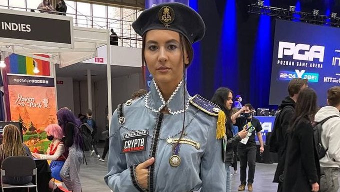 8 21 Second Lieutenant Lamia Personal Officer recruiting new colonists in the name od Adria Corp. #NFTGaming #cosplay 21/10/25 16:12