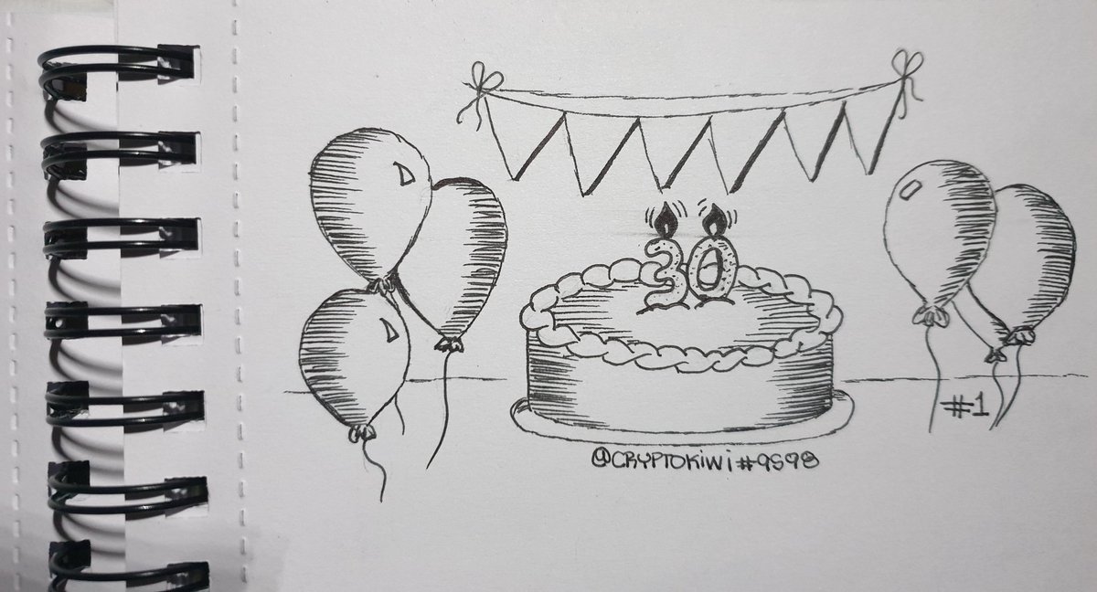 Me atreví a mostrar mis garabatos para cumplir el reto del #BanTober2022 de la familia más divertida de todos $BAN N° 1: Tarta (Preparandome psicologicamente para los 30) #Inktober #Inktober2022