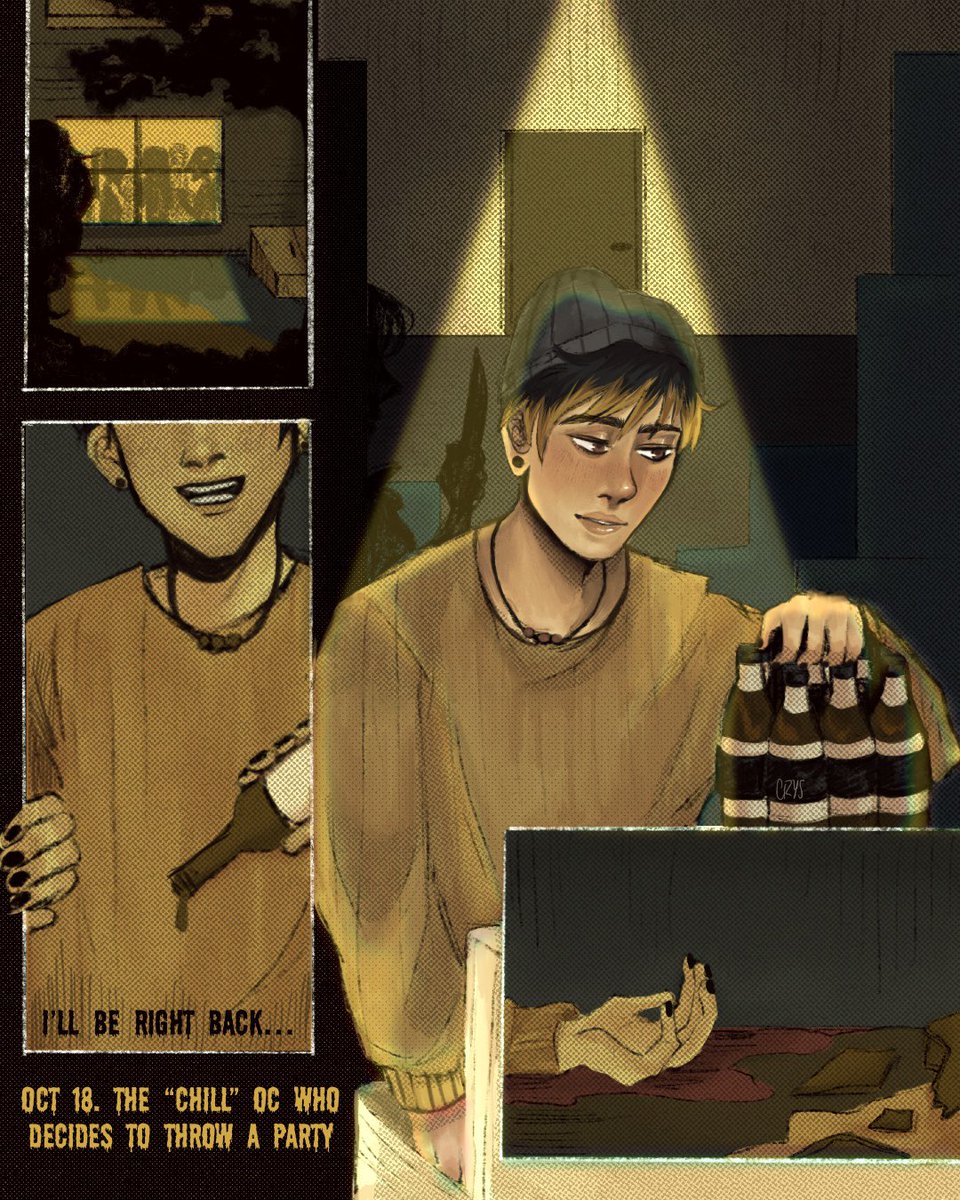October 18. The “chill” OC that throws a party That would be Gavin, he loves parties and he’s a rich boy. He would definitely be the character who says “I’ll be back” and never does. #ArtistOnTwitter #oc_tober2021
