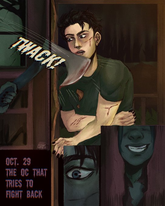 Oct 29. The OC that tries to fight back Lucas will try but my boy really wouldn’t survive because you can’t out violence the k*ller 🔪 #procreate #ArtistOnTwitter
