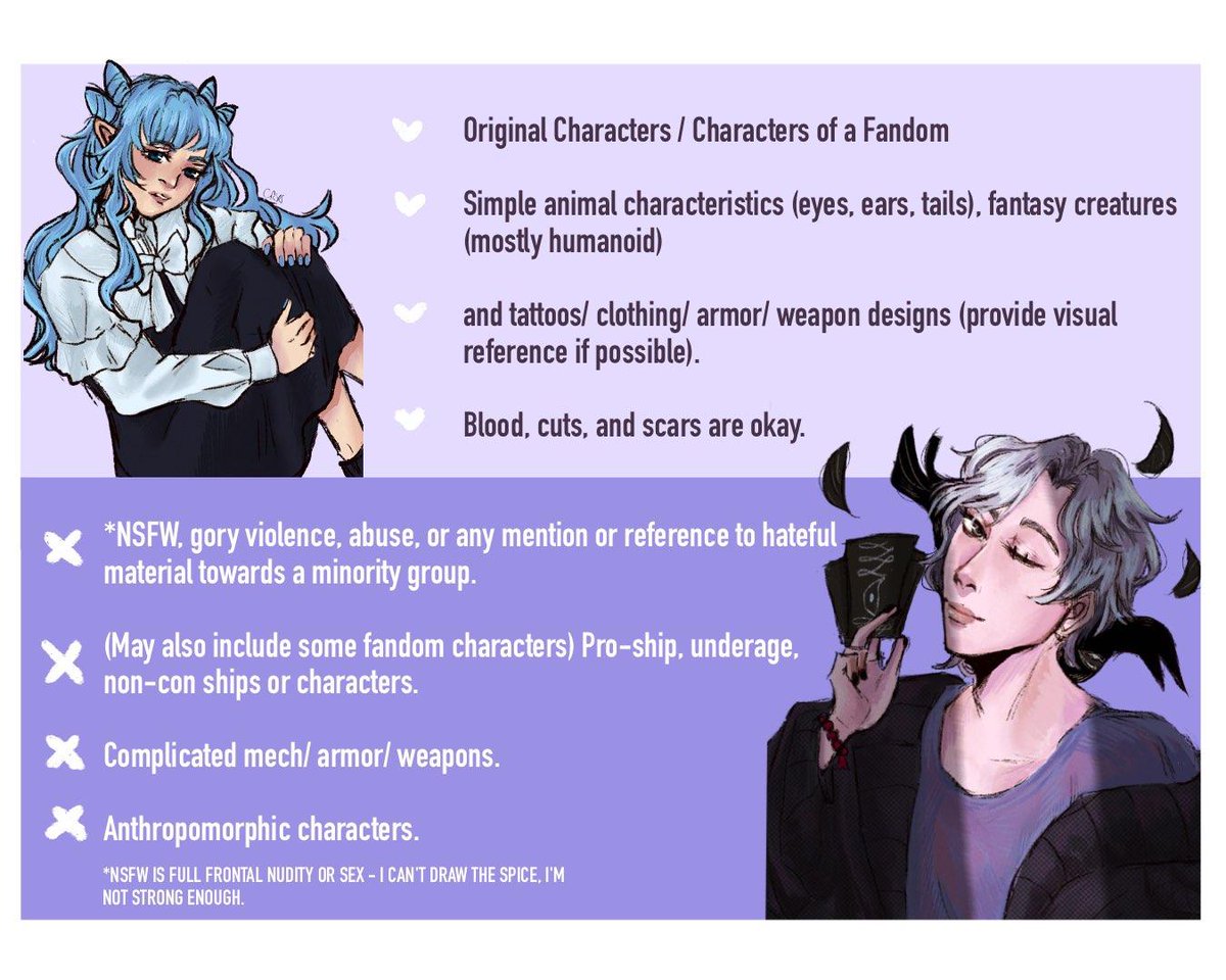 APRIL COMMISSIONS OPEN 💜4 slots ✨ A6 / Post Card Size 💜Bust or Half-Body drawing. BW sketch, flat color, or rendered. ✨All payments made on Ko-Fi. TOS and Links Below! #ArtistOnTwitter #commissionsopen RTs Highly Appreciated!!!!