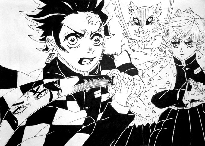 It's not perfect but I'm okay with how it turned out! 🤞🏻 that the coloring & shading go well 😓 #DemonSlayer #DemonSlayerFanart #KimetsuNoYaiba #KimetsuNoYaibaFanart #art #artist #tanjiro #inosuke #zenitsu