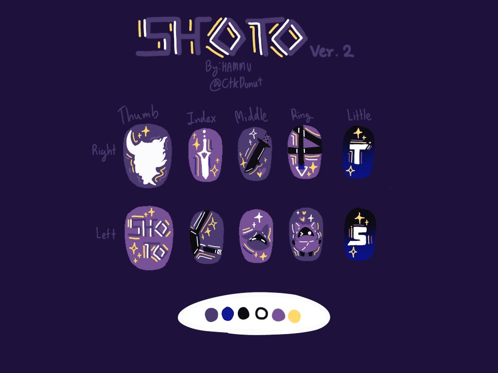 Set nail art of #shxtou I hope you like it✨💜🤟 ✨ Personal only ✨ ไม่มีใครเรียกร้องแต่ขอทำเองเลยค่า อยากทำนานแล้วลายโชโตะ หวังว่าจะชอบนะคะมีให้2ver.เลยยยย✨🫶 #ArtoftheRogue