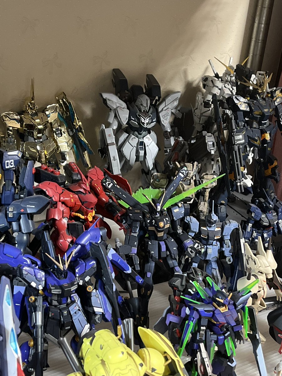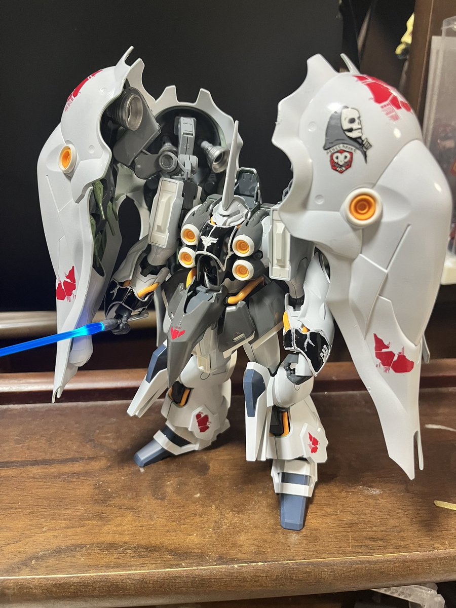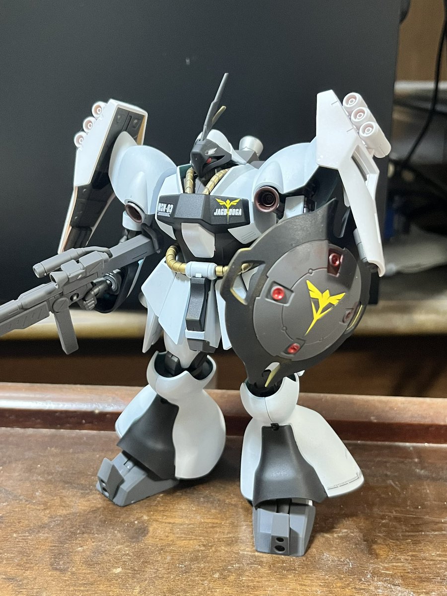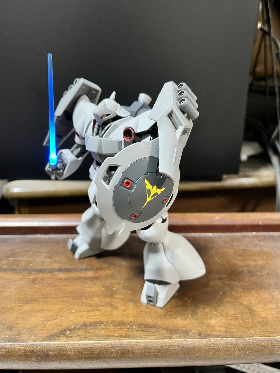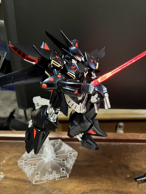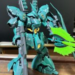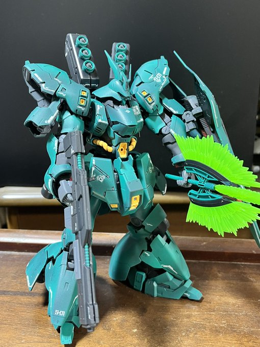 HGヤクト・ドーガ完成しましたー ゴールデンウィークなのでゴールドメインで塗装しました。 ただゴールドだけだと味気ないので色反転っぽい感じですね。ブラックライトで光ります #ガンプラ #ガンプラの画像貼るとRTされると聞いて #GWなので金色の画像を貼る #みどりの日だから緑色のプラモデルを貼る