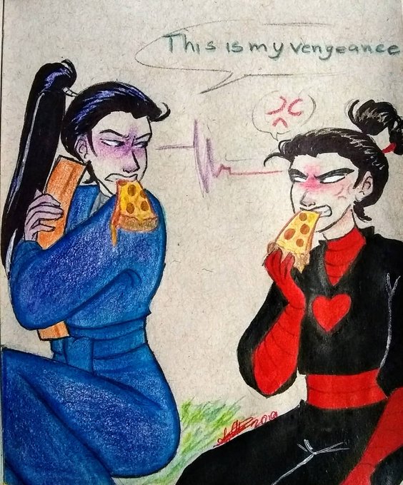 Day 15: Garu and Tobe sharing a pizza #pucca #Inktober