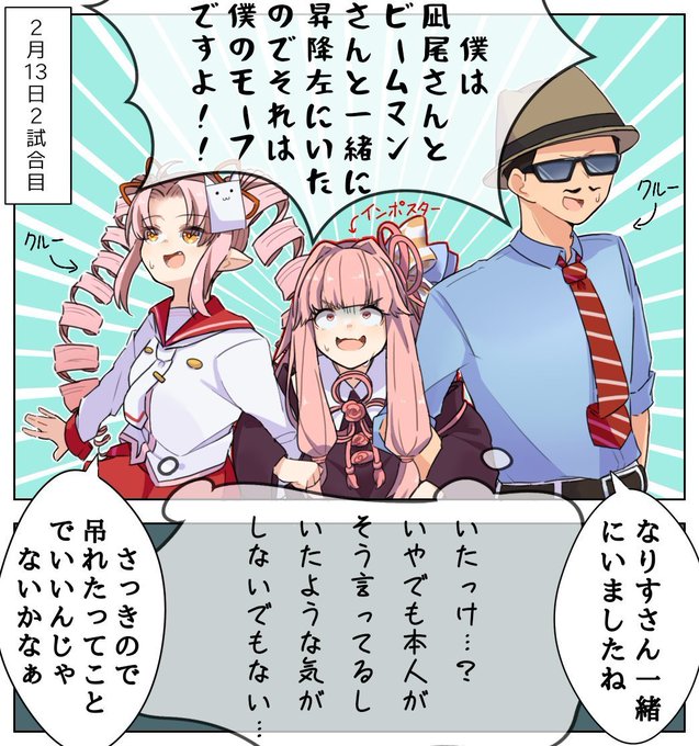 隊長「なんでその場にいないのにラインが繋げるの!?すごいよ!?」 ジローさん「そして白出しされた結果吊られたのが戌宮さんなんですよ…」 #ふにん画す