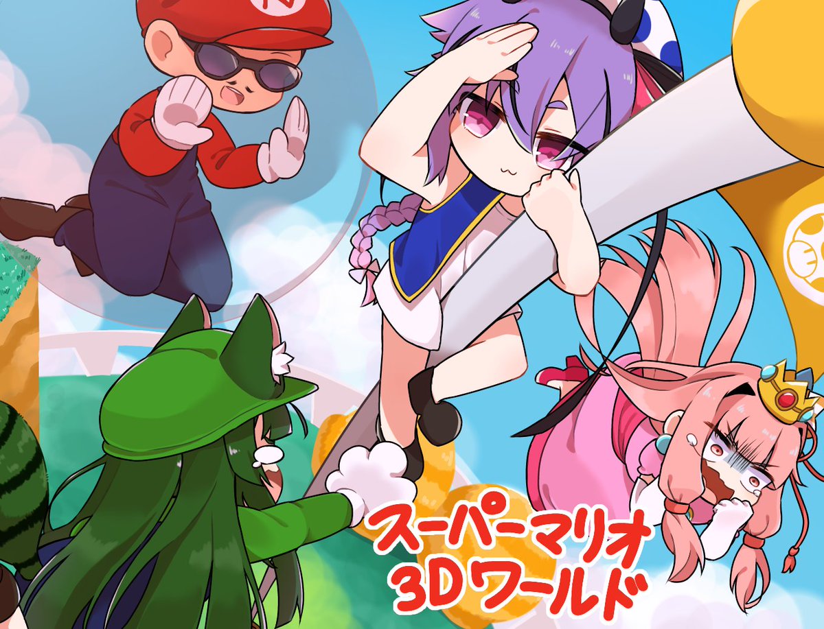 44 235 ラギさん凪尾さん猫野さんなりすさん4人の3Dマリオ完走記念絵 毎回腹抱えて笑いながら見てました ワンチームワンチーム!!!! 22/06/03 19:58