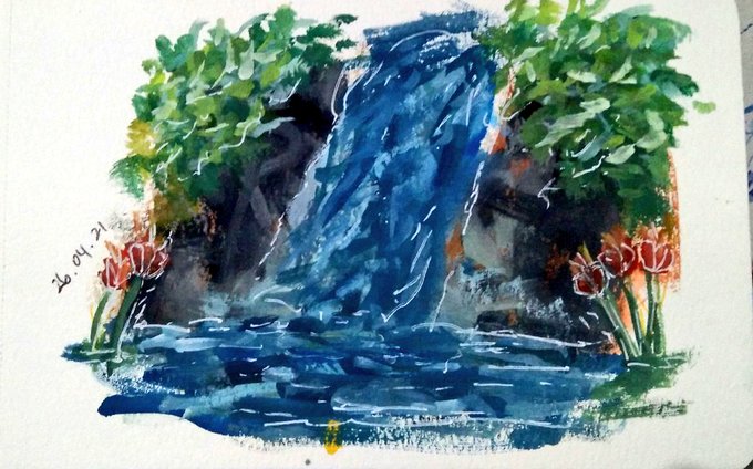 Just a random doodle after the exam ಠ◡ಠ • • #artidn #Watercolor #painting #waterfall #zonakaryaid