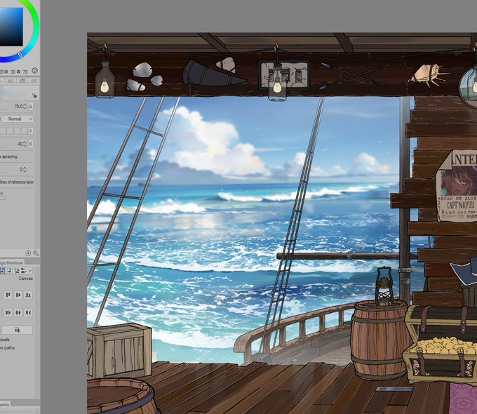 I did the background art for @Fulgur_Ovid 's new room! I had a lot of fun designing the space. There was indeed a lot of references! Sorry I can't post more highres image but I will zoom in on some cute stuff! Thank you so much for working with me! #NOCTYXOutfitRelay #Artchivist