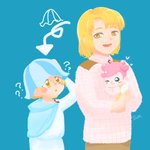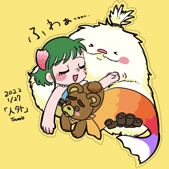 7 25 #牧物版深夜の真剣お絵描き60分一本勝負 #牧場物語 #コロステ 「人外」で!ムクムクとダーちゃんに挟まれてふわふわのレタスちゃん 22/01/27 23:18