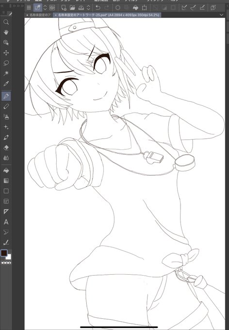 大空スバルお絵描き線画まで。忙しくて絵描く隙がねぇ #プロテインザスバル