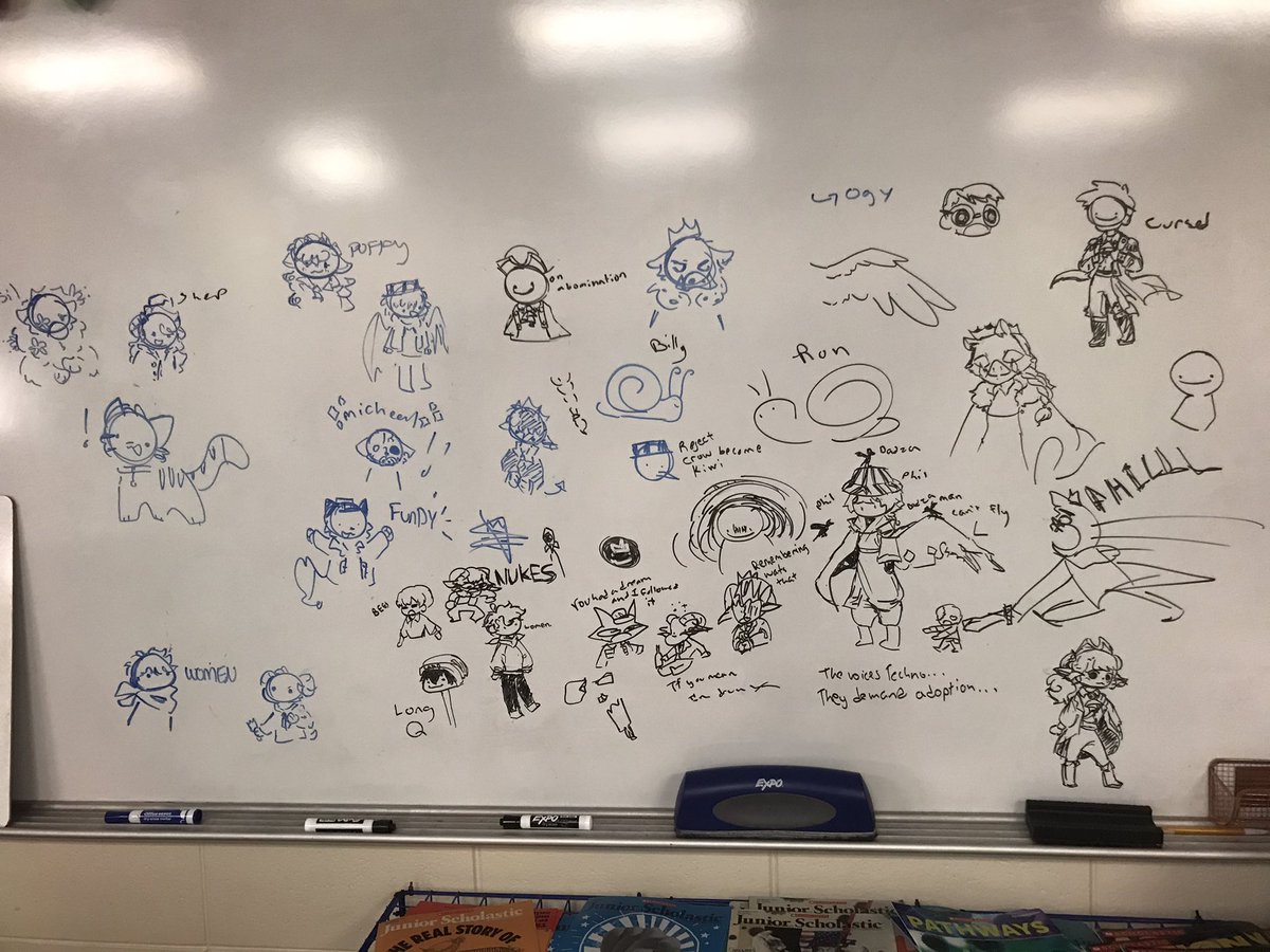 After first day of final exams my friend and I went feral on the whiteboard I did the black drawings lol #dreamsmpfanart #dreamsmp