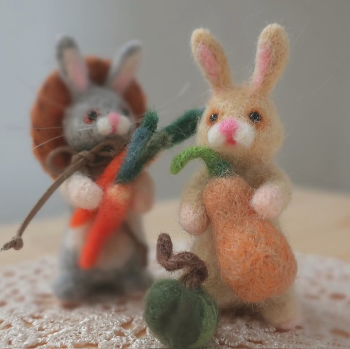 0 1 南瓜収穫中🎃 #羊毛フェルト #うさぎ #ハンドメイド 23/06/16 14:12
