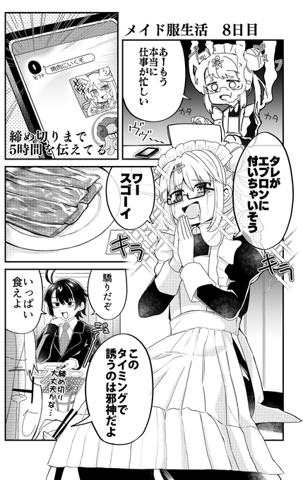 🔴バーチャルメイド服生活 8日目 ┈┈┈┈┈┈┈┈┈┈ Vtuberが毎日メイド服を着て 生活するだけの漫画 『締め切りと飯テロのタップダンス』 ┈┈┈┈┈┈┈┈┈┈ #喫茶ユゴス #漫画が読めるハッシュタグ