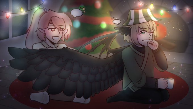 Merry Christmas!!! ✨ This is a gift for @_angrycherry for #DSMPsecretSanta2022 :D Hope you enjoy some art of Techno preening Phil's wings ^^ Also thank you to @Miauta_Mi for hosting this secret Santa!! --- #technobladefanart #philzafanart #emeraldduofanart