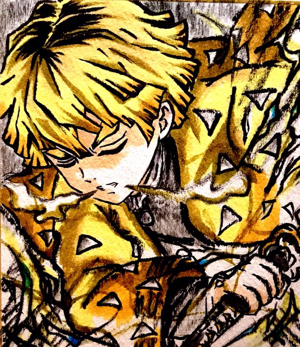 3 20 #鬼滅の刃イラスト 筆ペン色紙描き 我妻善逸 描いてみた。 20/06/06 16:02