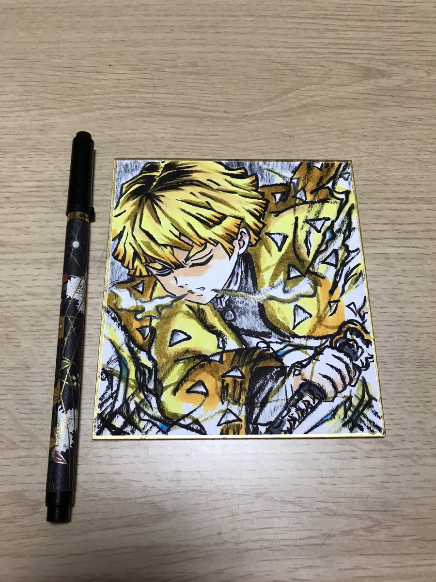 #鬼滅の刃イラスト 筆ペン色紙描き 我妻善逸 描いてみた。