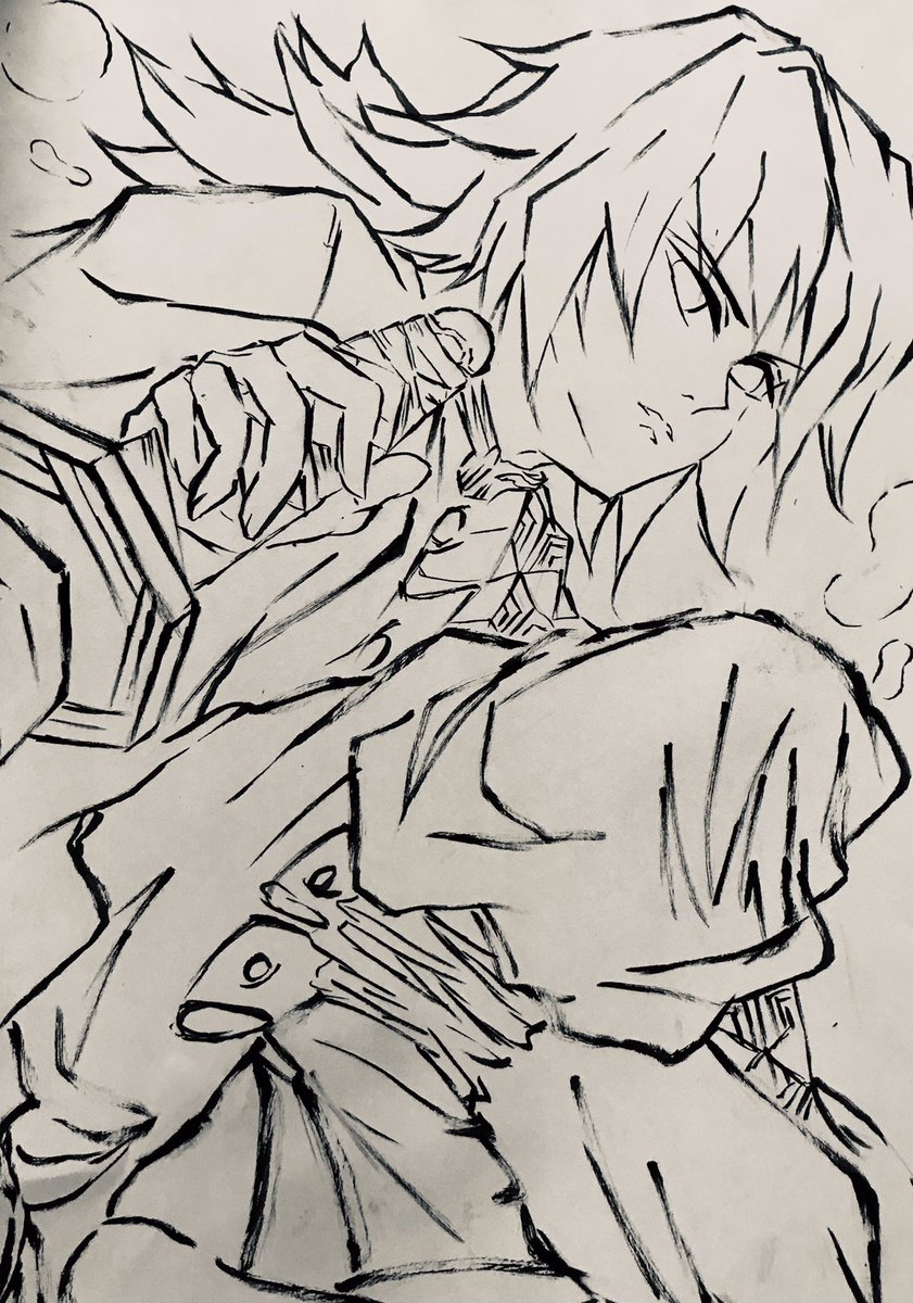 #鬼滅の刃イラスト 筆ペン描き 不死川 実弥 描いてみた。リクエストありがとうございます☺️