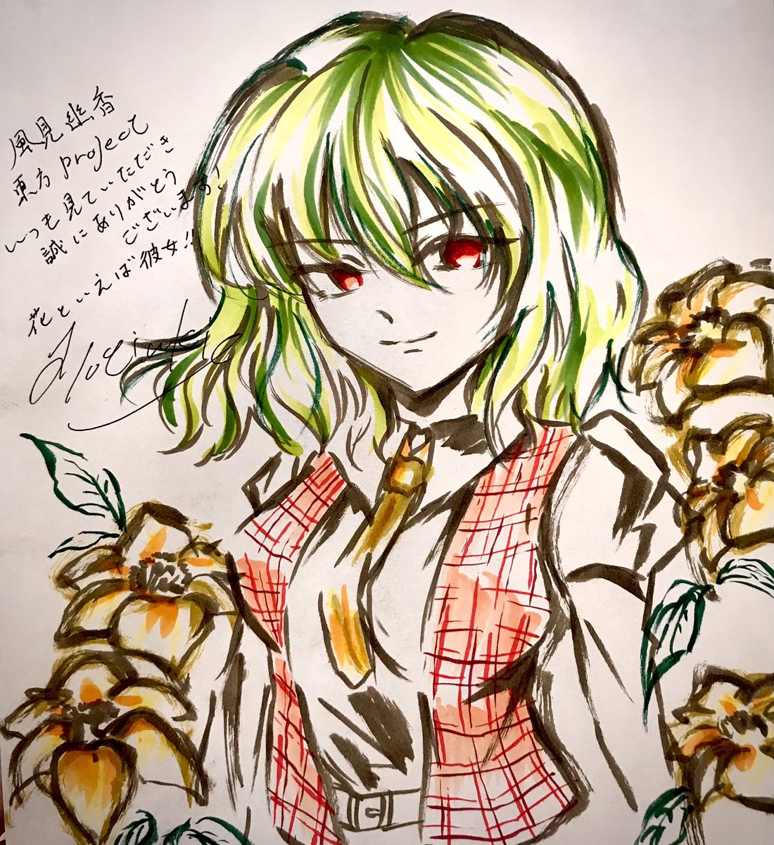 28 72 リクエストありがとうございます^^ 東方project 風見幽香 描いてみた。 ボールペン&コピック 珍しく背景も付け足してみました😅 #風見幽香 #東方イラスト #東方project #イラスト 21/09/16 02:31