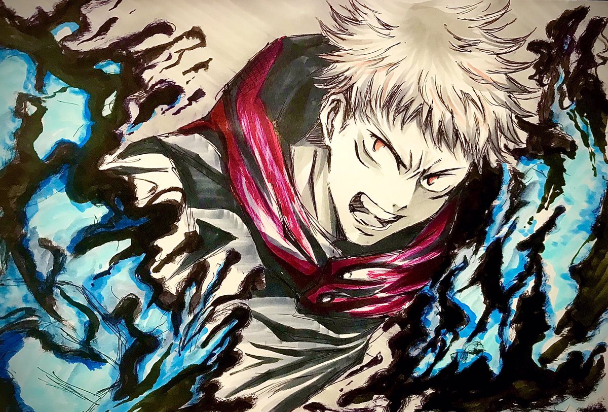 8 40 呪術廻戦 虎杖悠仁 描いてみた。 ボールペン&筆ペン&コピック 若干のモノクロバージョン #呪術廻戦 #イラスト #虎杖悠仁 #呪術廻戦イラスト 21/04/03 03:19