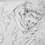 呪術廻戦 虎杖悠仁 描いてみた。 ボールペン&筆ペン&コピック 若干のモノクロバージョン #呪術廻戦 #イラスト #虎杖悠仁 #呪術廻戦イラスト