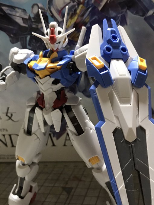 今日 仕事が 休みなので HG ガンダムエアリアル君の 素組みを やっと完成 しました❗️ シールドが カッコ良い‼️👍 #HGガンダムエアリアル #ガンプラの画像貼るとRTされると聞いて #ガンプラ