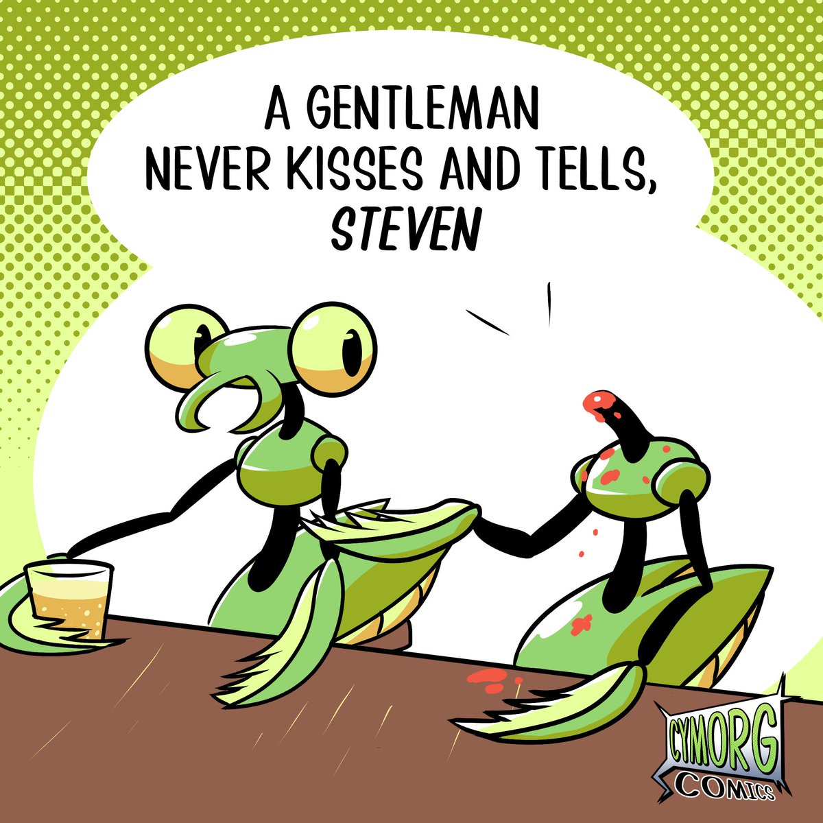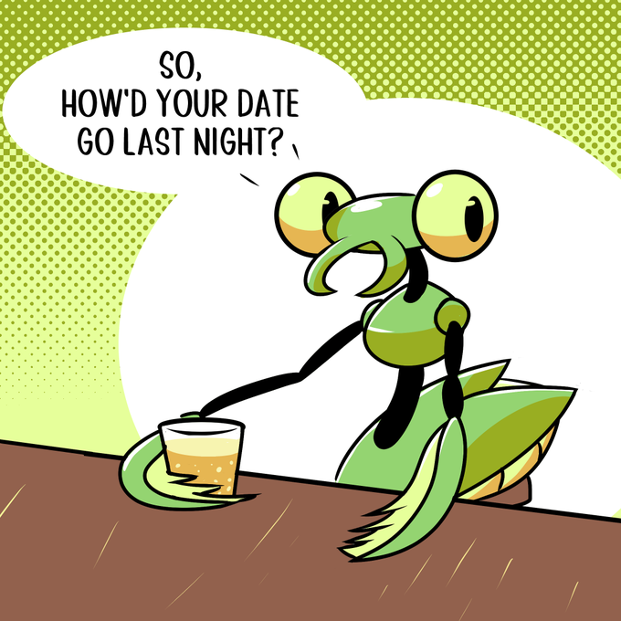 I was struck with inspiration for several praying mantis sex jokes last night after a 14 hour shift #webcomics #funny #ArtistOnTwitter #MantisSex #HeadForHead