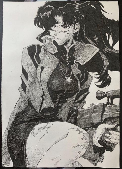 なかなかにしんどかった… 自分的に結構頑張ったからふぁぼりつ頂けると嬉しいです。 #模写 #イラスト #ペン画 #エヴァ #ミサト