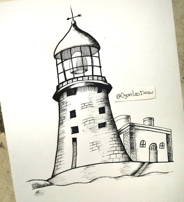 Día 15, #Outpost, Faro de los Cabos Gemelos - One Piece #inktober #inktober2020 #inktober2020outpost #inktober2020day15 #inktober2020day15outpost #art #drawing #illustration #draw #ink #inkdrawing #traditionalart #onepiece