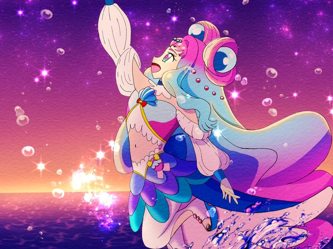 泡は太陽に照らされ、天高く何処までも昇っていきました その様子はまるで心の美しい人魚姫の心が高みへと昇華されていく様です。 そしてこの人魚の次期女王もまた、どこまでも美しく成長していくのでした #キュアラメール生誕祭 #キュアラメール生誕祭2022 #ローラ・ラメール生誕祭2022 #precure