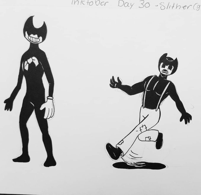 #inktober 2021 Day 30 and 25, slither and splat #inkbendy and #SammyLawrence #batim #BendyandtheInkMachine #inktober2021