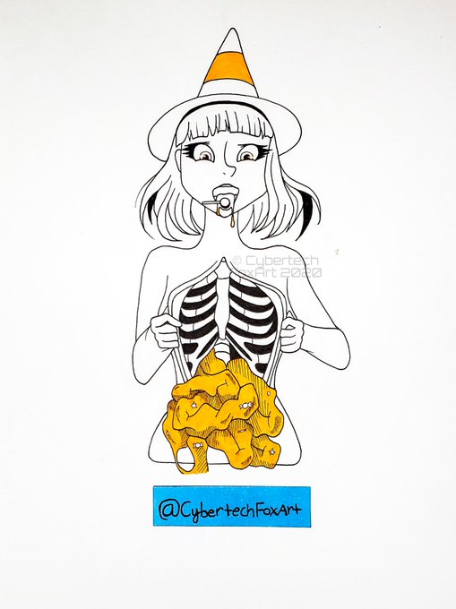 Day 12: Guts Spilled #Candy Witch **swipe for cool black light action 😎** Artwork © Lauren Bartley All rights reserved. #CybertechFoxArt #artist #drawtober #drawtober2020 #traditionalart #october #witchtober #Witchtober2020 #goretober #goretober2020 #Inktober #inktober2020 #gore