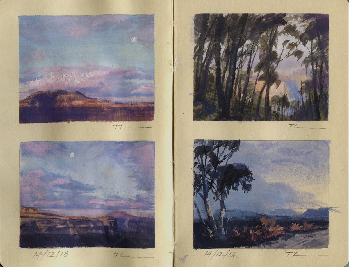 Some more Gouache thumbnails from my sketchbook - Megalong Valley- Blue Mountains NSW #sketch #gouache #landscapepainting #Bluemountains #clouds