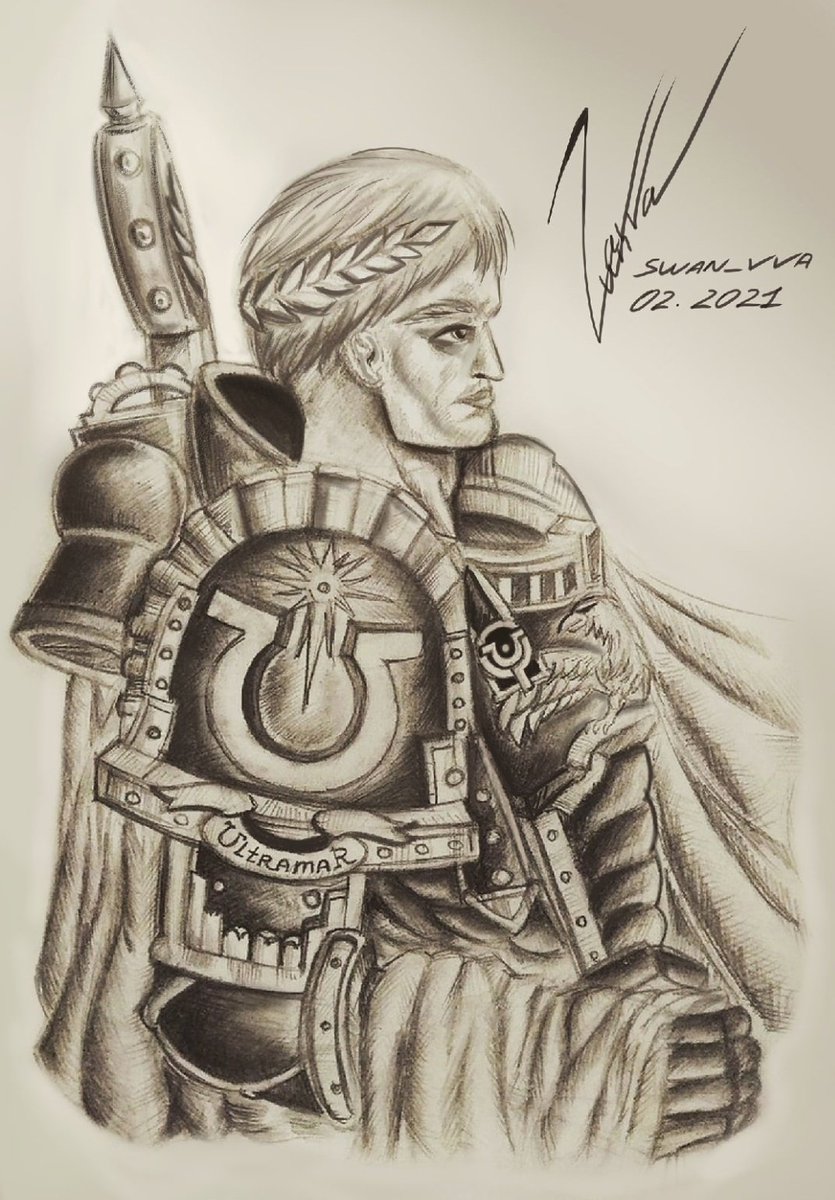 My 1st #SixFanarts art and 1st experience with traditional and digital Roboute Guilliman from #warhammer40k #art #artist #fanart #pencil #digitalart #drawing #illustration #primarch #artistonwitter