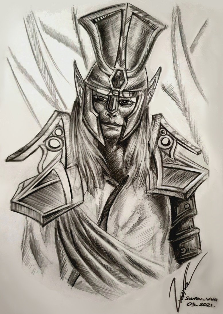 The 3-rd #Sixfanart artwork. Almost chIm Sotha Sil from #TheElderScrolls P.S. His strange look. Who or what is he looking at? #artistontwittter #art #TESO #TES #Morrowind #SixFanartsChallenge #sixfanarts #traditional #illustration #pencil #drawing