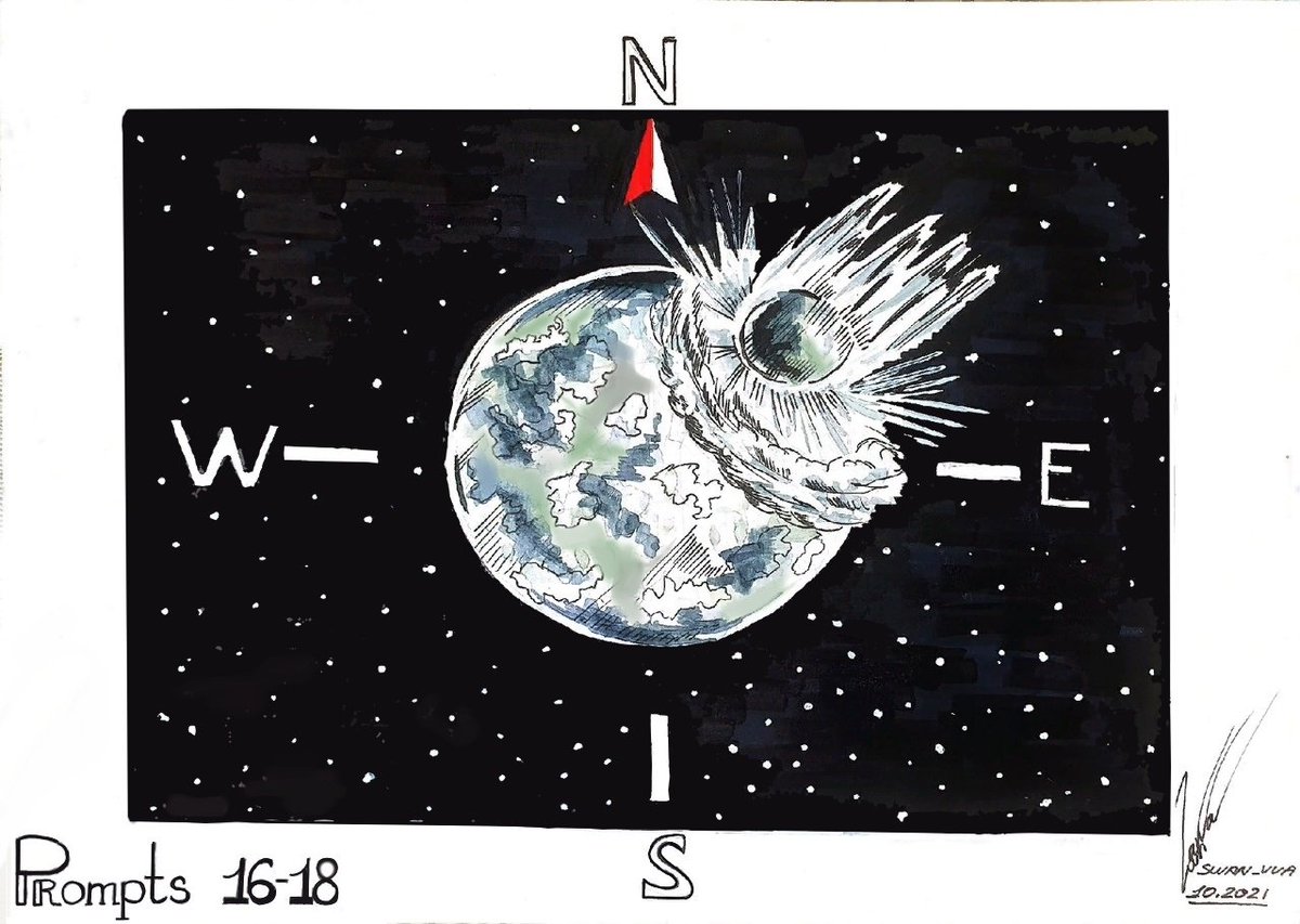 An marker-drawn asteroid made a KABOOOOOOOOM #ArtistOnTwitter #inktober2021 #artwork #traditionalart #sketch