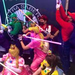 As requested… the full team SLAYING it #supermario style… with a retro flair! @RyanOMGa and my co-worker killin it !! We had a ball!!! Now for some fun partying! #Wondercon2022 #WonderCon #mario #lugi #PrincessPeach #cosplay