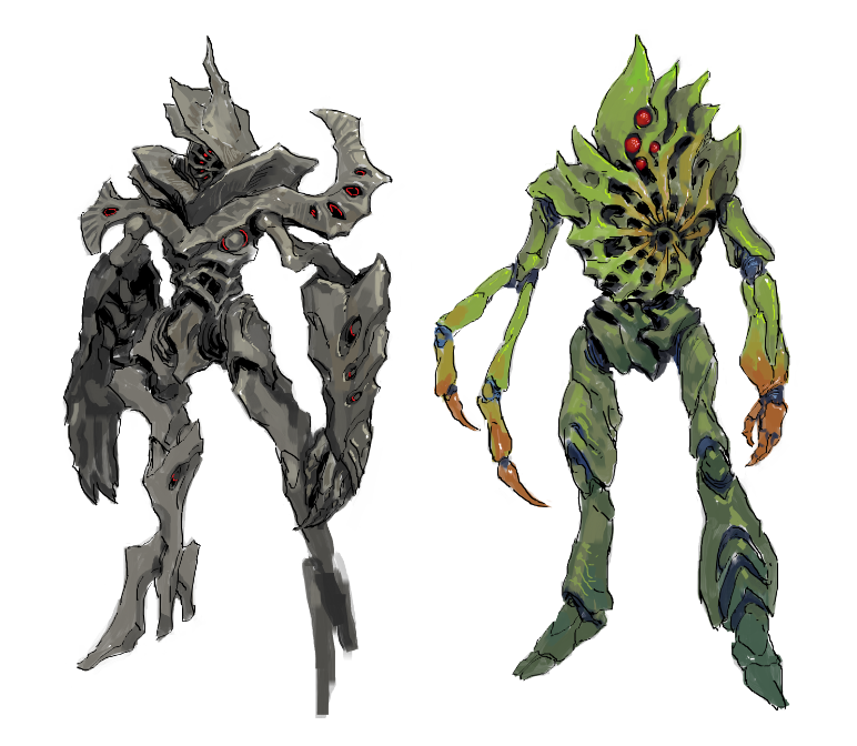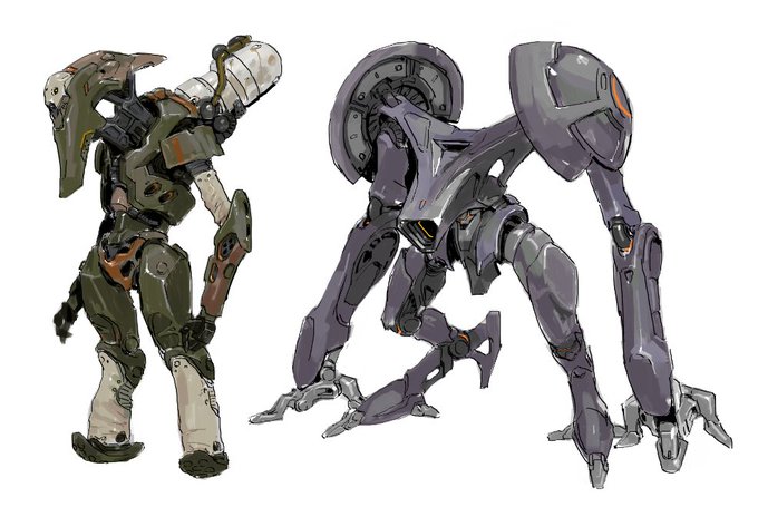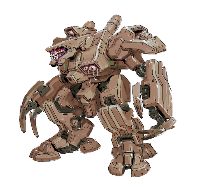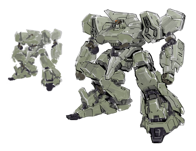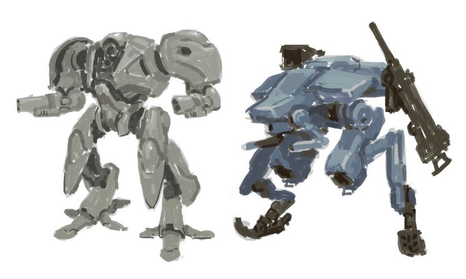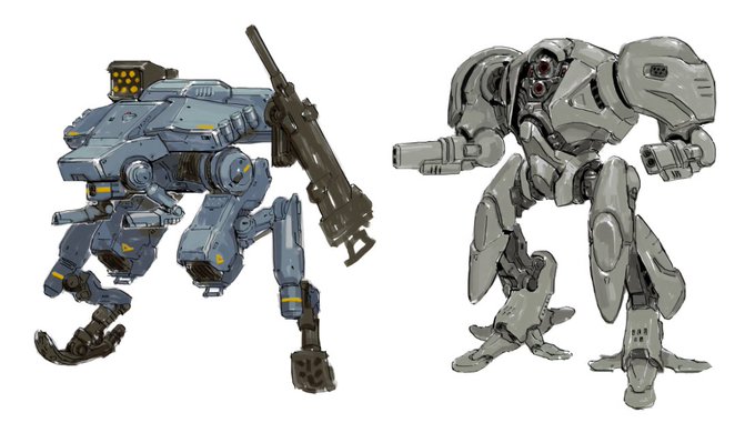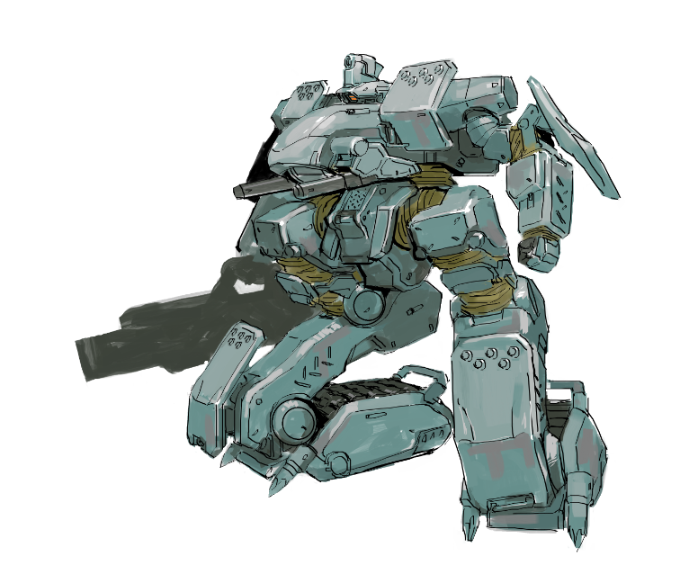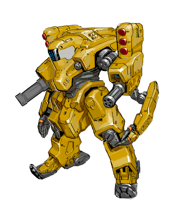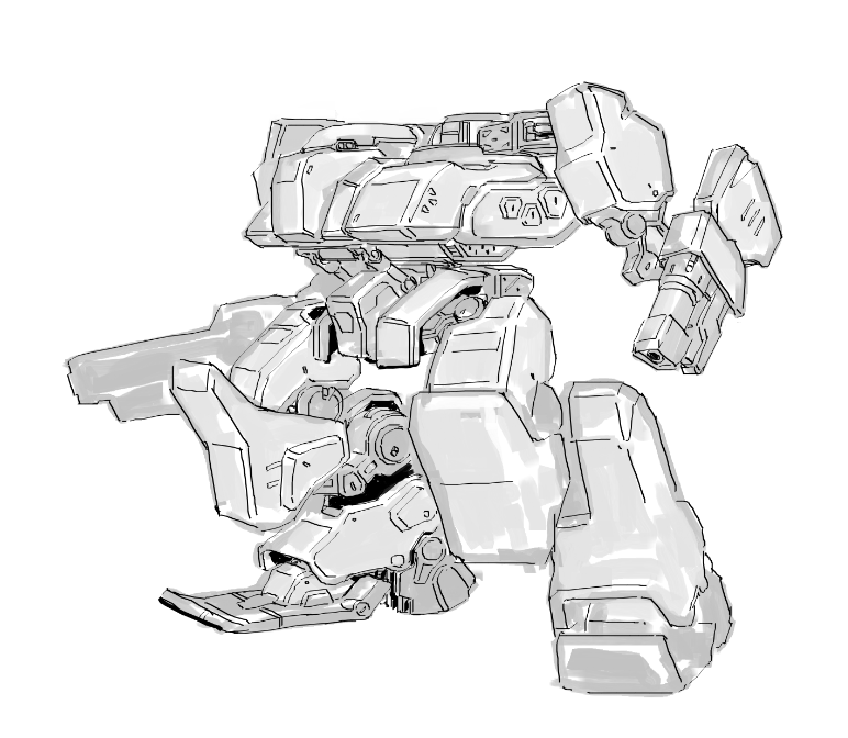 The one good thing bout drawing everything in roughly 3/4ths perspective is that I can just take parts from one mech and mash them onto another one with minimal overpainting