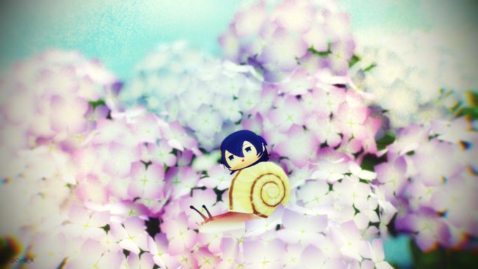 お題:梅雨 冬のお友達がゆきだるまさんなら、梅雨のお友達はかたつむりさんと、てるてるぼうずさんです! こもちちゃんは特に仲良しで、晴れ間を狙っては、庭の紫陽花にやってくるかたつむりさんと遊んでます😆 #もちねんすけちか版お絵描き120分
