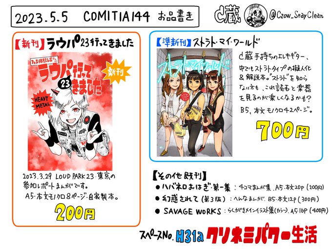12 18 お品書きができました! 明日のコミティアでサークル参加します!スペース№は「H31a」サークル名は『クソネミパワー生活』です! #COMITIA #COMITIA144お品書き 23/05/04 12:42