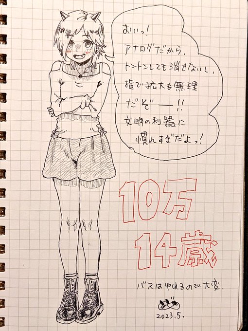 7 21 そう言えば昨夜のバス車内あまりに進まなくて手持ち無沙汰に描いたらくがき 久々のアナログ ふいに来る車の揺れがなかなかキツかった 23/05/05 13:20