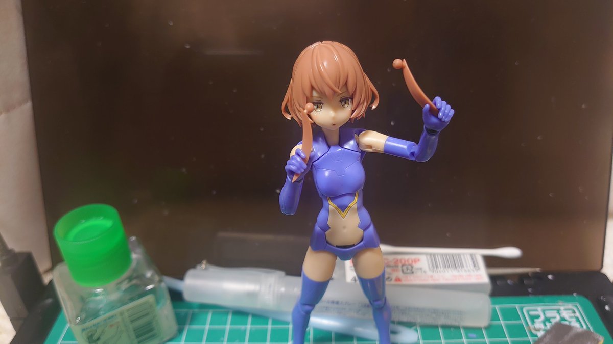 スサノヲの髪に異物混入 交換請求するかランナー埋めか微妙だな 1ランナーで頭部2個組める仕様ならタダで…… #メガミデバイス