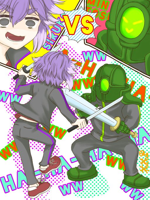 (深夜に始まるスポーツバトル!) チャンバラする🐶🤖が本当に楽しそうでww(※武器はイメージ) ゲーム後、🐶さんに「(雑談を)どうせ5時間くらするんでしょ?w」とか言いながら「ほどほどにして終わっておいてくださいw」って気遣う🤖さん優し過ぎて😊❤ #bintrollFA