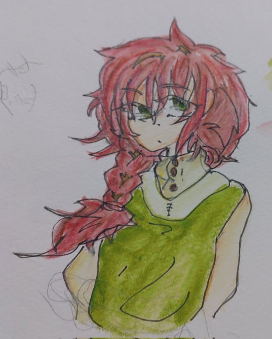 中1年左イラスト水彩鉛筆 今リメイクイラスト色鉛筆 #イラスト #アナログイラスト