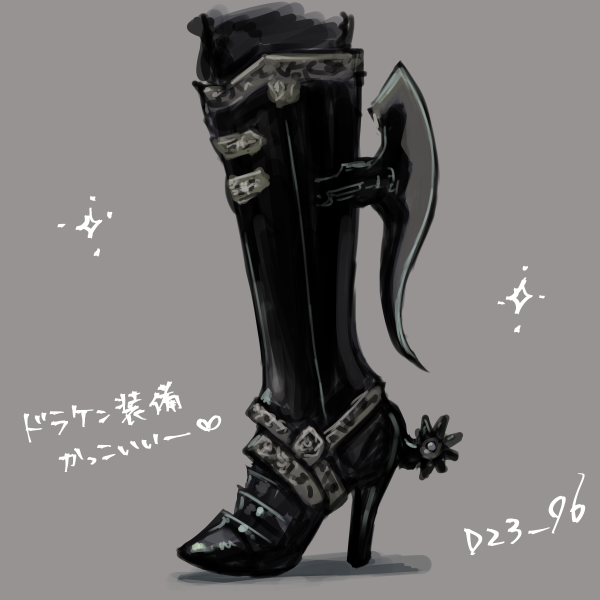 MHWのドラケン重ね着やっぱりかっこいい…チュウニ心くすぐる~。足下が特に好き。細部全然違いますけど、拍車とかブレードとかヒールとかとか。