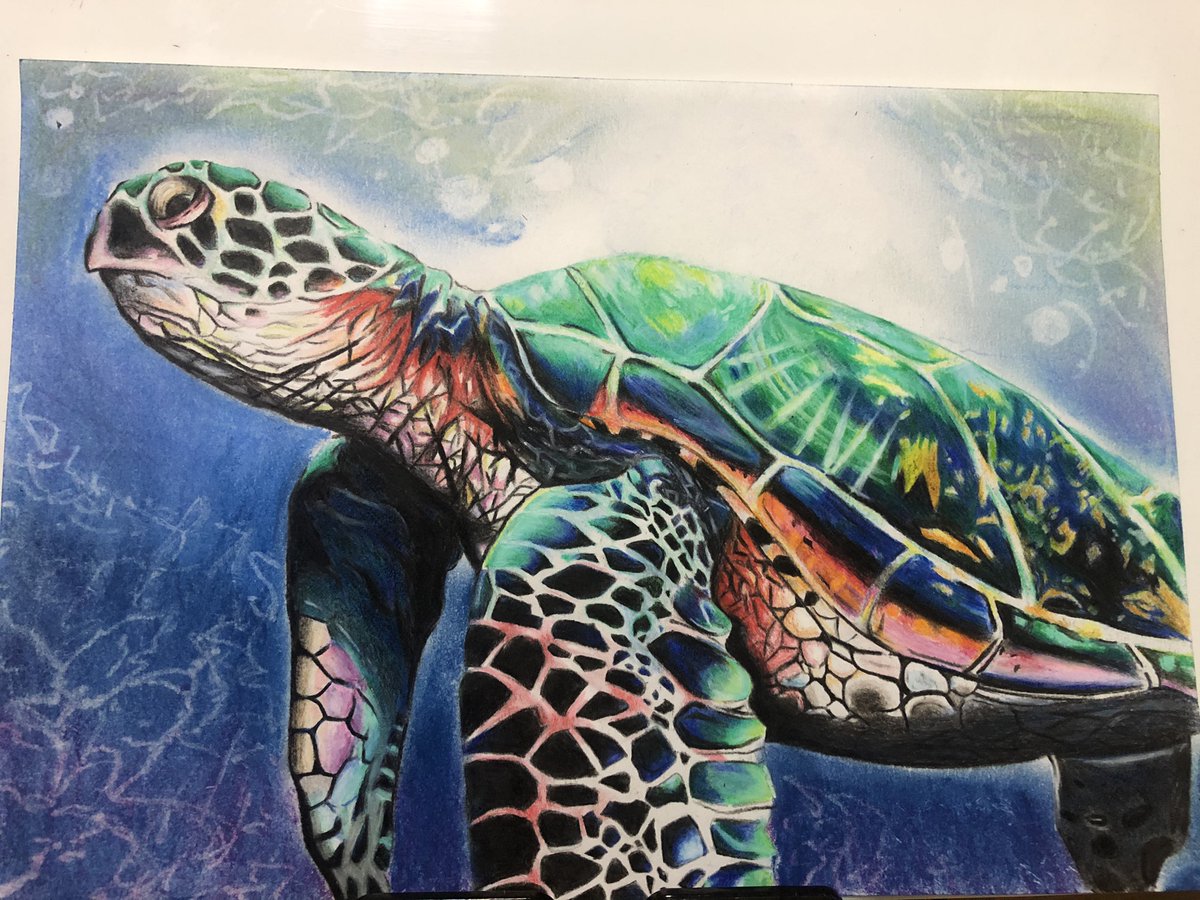 1年前に描いた亀〜 今度これのリメイク描きたいなあ #色鉛筆 #ウミガメ #絵描きさんと繋がたい