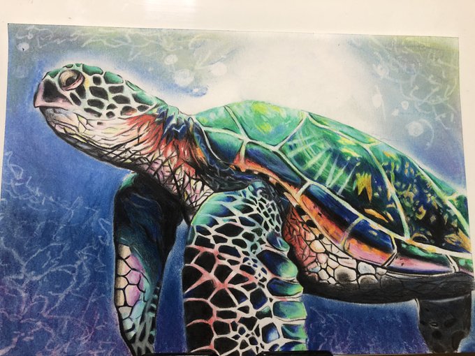 色鉛筆でウミガメ描きました〜!! フォローやRTお願いします😍 #うみがめ #色鉛筆 #絵描きさんとつながりたい #拡散希望
