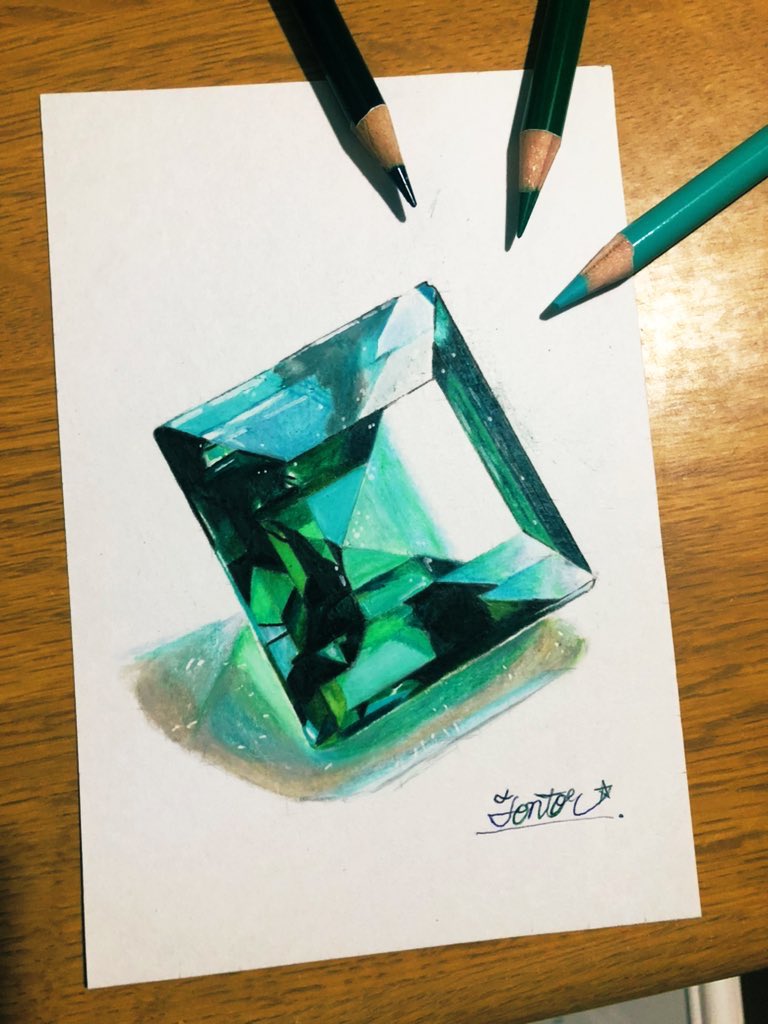 宝石エメラルド✧︎ #色鉛筆画 #絵描きさんと繫がりたい